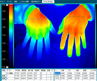 サーマルヴューX HR タイプD3はリアルタイムに部位の統計値を抽出できるサーモグラフィソフトウェアです。